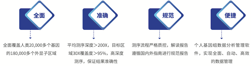 對超過20,000個基因(共計超過180,000個外顯子)進(jìn)行目標(biāo)區(qū)域富集與高深度測序,并利用個人基因組分析管理軟件自動化分析測序數(shù)據(jù)。不僅能夠全面解讀OMIM數(shù)據(jù)庫中所有致病基因明確的單基因遺傳病,還可通過對家系樣本分析,尋找新的致病基因。