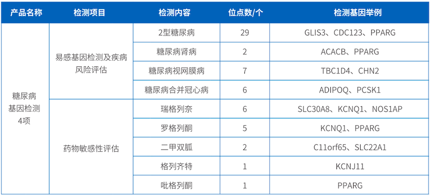并且通過對瑞格列奈、羅格列酮、二甲雙胍、格列齊特、吡格列酮五種常見糖尿病治療藥物相關基因進行檢測,提高藥物的治療效果,避免藥物不良反應,為糖尿病疾病個性化用藥提供指導。