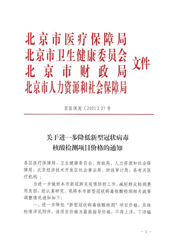 公示:關(guān)于進(jìn)一步降低新型冠狀病毒核酸檢測(cè)項(xiàng)目?jī)r(jià)格的通知