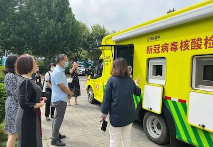 參觀過(guò)程中,博奧晶典工作人員向周惠會(huì)長(zhǎng)一行介紹了博奧晶典在生物芯片領(lǐng)域取得的累累碩果。其中,重點(diǎn)介紹了博奧晶典科技抗疫的標(biāo)志性成果——新冠病毒核酸檢測(cè)移動(dòng)實(shí)驗(yàn)室及搭載的全集成芯片實(shí)驗(yàn)室系統(tǒng),該系統(tǒng)在今年初憑借優(yōu)異的創(chuàng)新性能、為全國(guó)新冠肺炎疫情防控作出的突出貢獻(xiàn)以及推動(dòng)行業(yè)科技進(jìn)步的顯著成效,被評(píng)為“2021中國(guó)醫(yī)藥生物技術(shù)十大進(jìn)展”。