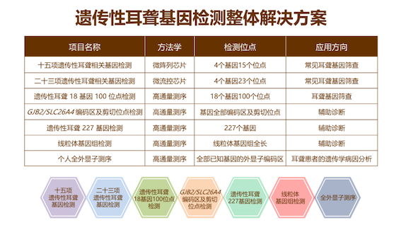 博奧晶典遺傳性耳聾相關(guān)基因檢測芯片的不斷升級迭代,有助于篩查出更多致聾基因變異人群,盡早為其提供生活指導(dǎo),降低耳聾發(fā)生風(fēng)險,早診斷、早干預(yù)、早治療。目前,博奧晶典已推出基于微陣列芯片、微流控芯片及高通量測序平臺一系列產(chǎn)品及服務(wù),包括:十五項遺傳性耳聾基因檢測、二十三項遺傳性耳聾相關(guān)基因檢測、藥物性耳聾基因檢測、遺傳性耳聾基因檢測(100項)、遺傳性耳聾基因檢測(227個基因)、線粒體基因組檢測、全外顯子組基因檢測等,為備孕期及孕早期夫婦、新生兒及聽障人群提供最佳的篩查、診斷方案,同時提供專業(yè)的報告解讀及后續(xù)遺傳咨詢服務(wù),以實際行動全面助力耳聾三級防控,減少聾兒的發(fā)生。